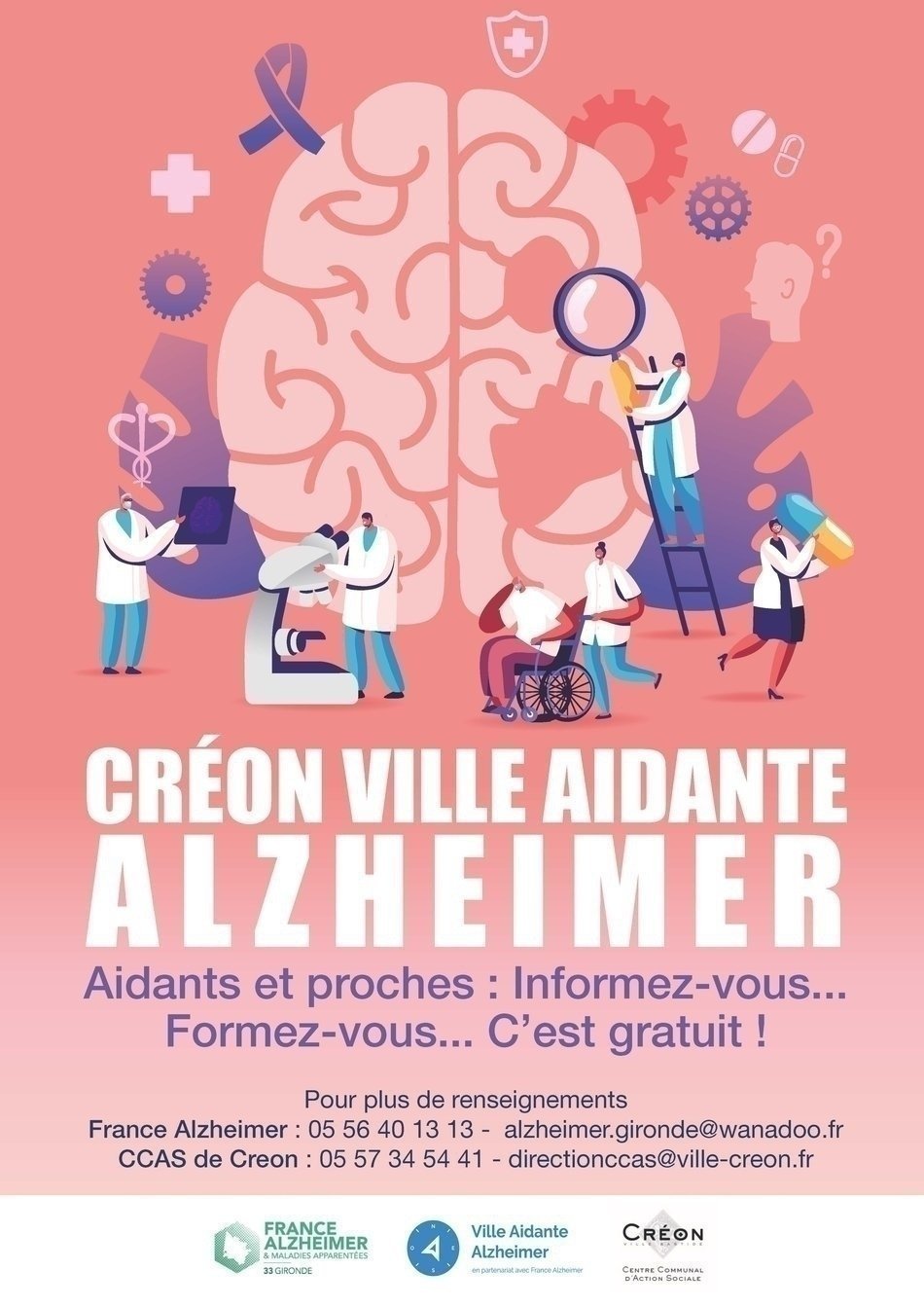 La commune de Créon a signé la charte « Ville Aidante » et dans cette dynamique, l’association France Alzheimer en partenariat avec le Centre Communal d’Action Sociale de la ville de Créon vous proposent, gratuitement, des actions pour les personnes atteintes de la maladie d’Alzheimer et pour leurs aidants.